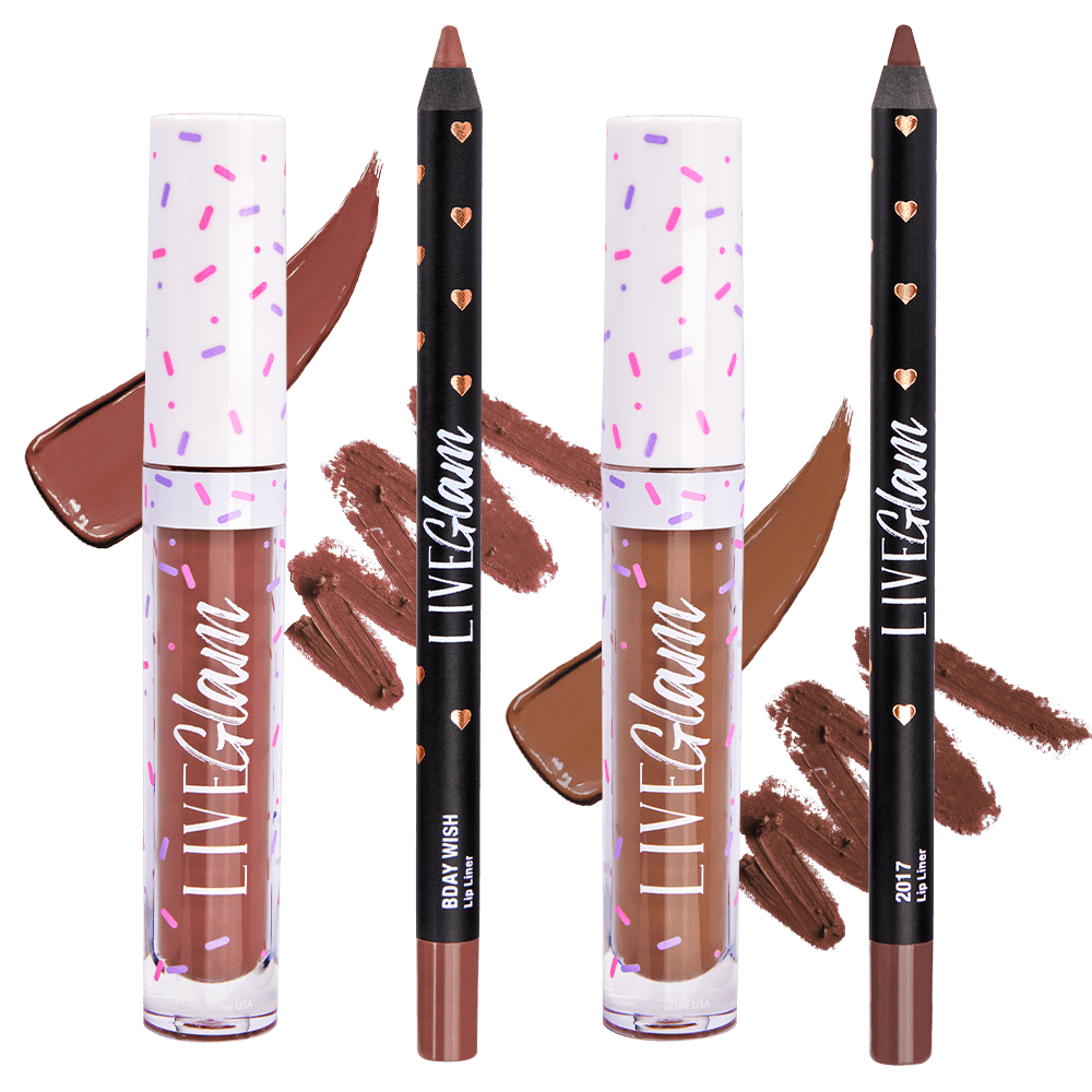 Our bday month set features 2 festive lippie shades and 2 sexy lip liners that will no doubt add dimension to your perfect pout. This collection makes getting glammed up a piece of cake!