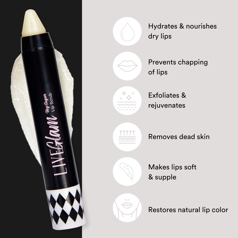 A twist-up, sugar lip scrub that gently exfoliates and hydrates your lips. It buffs away dry, flaky skin while moisturizing with nourishing ingredients for silky-smooth lips.