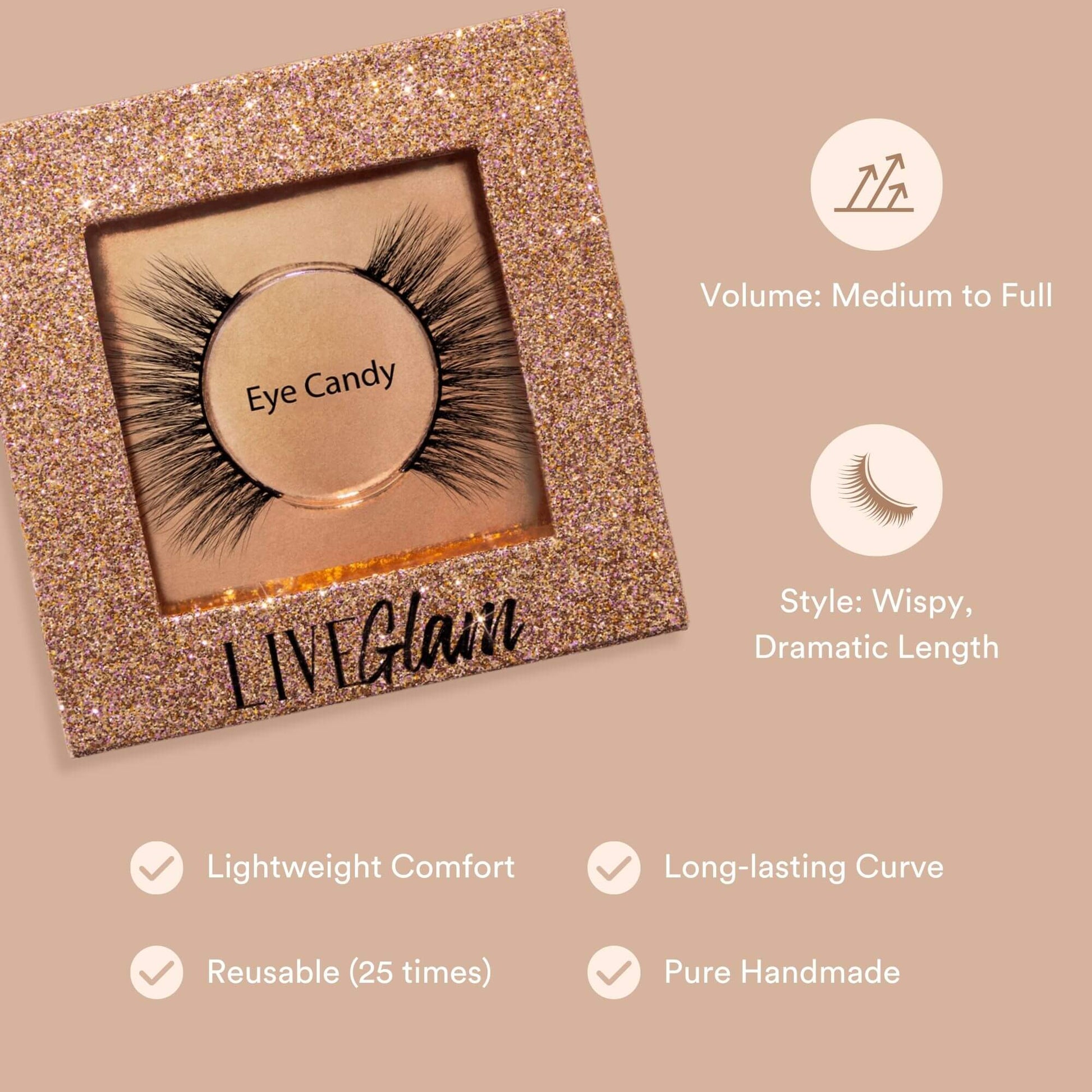 Let your eyes do the talking with these feathery-light, faux mink lashes. These defined lashes are 15mm, long and wispy, with just enough drama to accentuate your natural eye shape. Like sugar, these lashes make life a lil' bit sweeter!