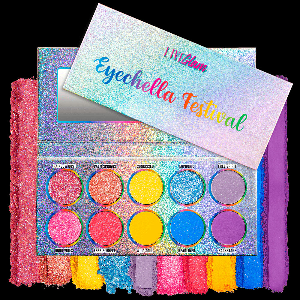 Eyechella Festival: Drop the bass with this richly-saturated, rainbow palette. From electric shimmers to eye-catching pressed glitters, these pigments are your new beauty headliners.