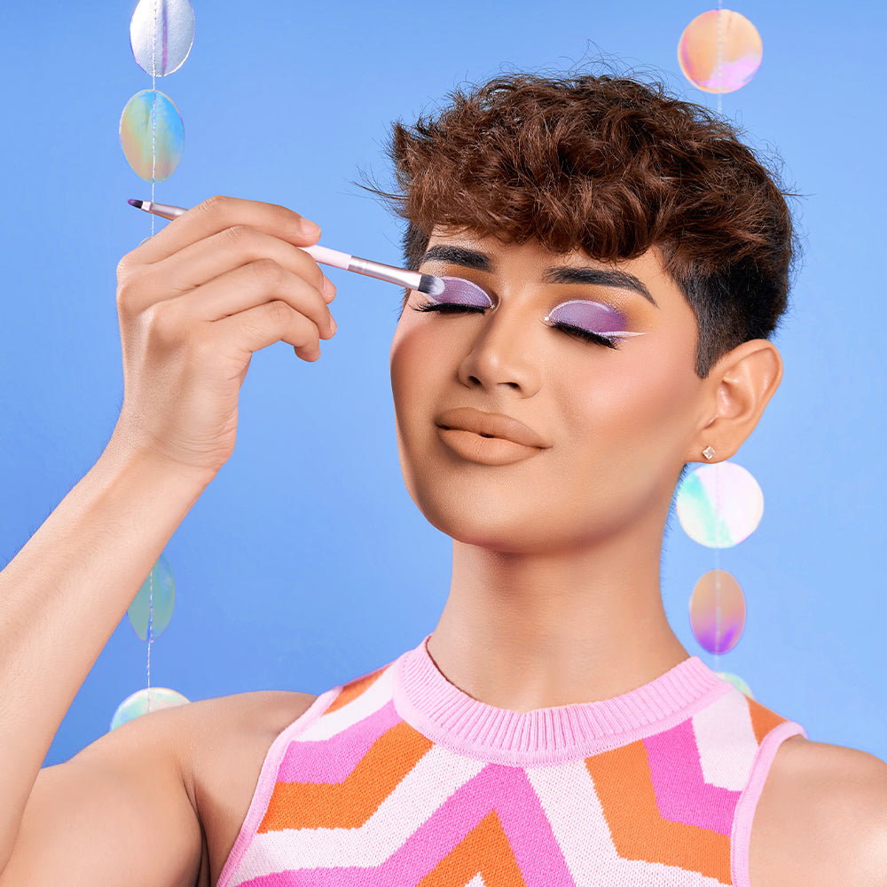 104 - Duo Eye Brush: Nothin’ but blue skies and dazzling eyes! From sunrise to moonlight, this duo-sided brush is eye-deal for flirty, festive eye looks.