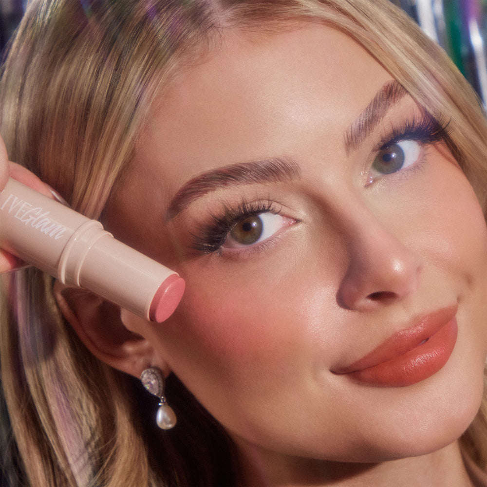 Rosy: Swipe on confidence and glow like you've got the universe blushing! Our Cheeky Kiss Cream Stick adds a natural flush of rosy pink to both cheeks and lips.